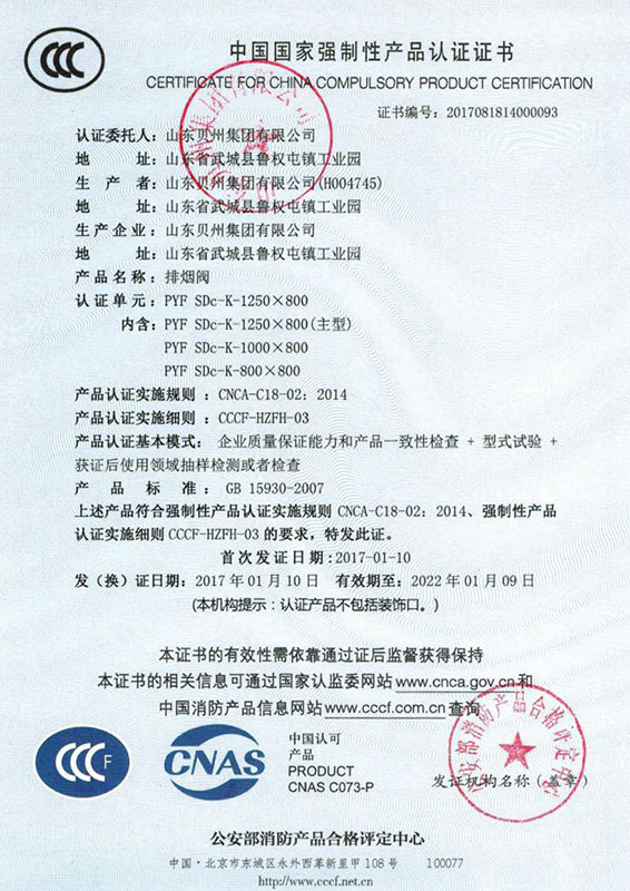 • 防火閥認證證書